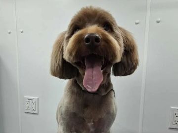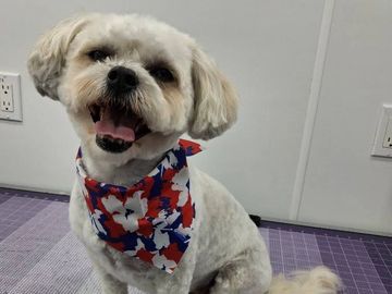 Includes a bath with custom shampoo and conditioner, a gentle plum facial, ears cleaned and anal glands expressed as needed, blow dry, brush out and de-shed as needed, nails clipped, paw pads and sanitary shave as needed, plus trimming around the feet, face and rear for haircut dogs, light trimming of a specific area (ex: rear, behind the ears) for feathered dogs.